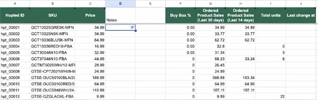 Hopted подтягивает актуальные данные из Amazon прямо в Google Таблицу.