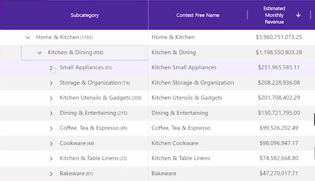 Например, ты можешь увидеть подкатегорию, которая делает 6 миллионов долларов в месяц, и понять это буквально за несколько секунд.