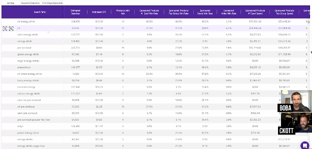 Скотт: Ты сразу видишь выручку, рост за 12 месяцев, долю Amazon, средние размеры товаров.