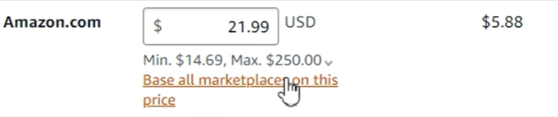 Я обычно выставляю цену для американского Амазона, а потом жму кнопку Base all marketplaces on this price —