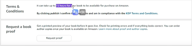 Terms & Conditions говорят, что книга будет опубликована через 72 часа.