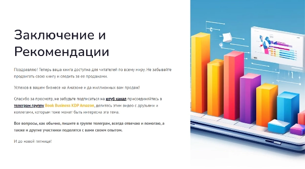 - Залетай в её бесплатную Телеграм-группу Book Bussines Amazon KDP, где можно задавать вопросы и узнавать опыт других продавцов.