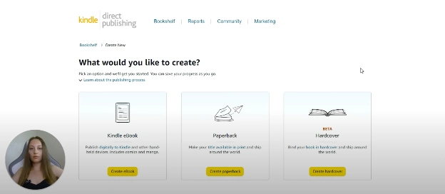 Далее Амазон у нас спрашивает, какой тип книги мы хотим опубликовать: