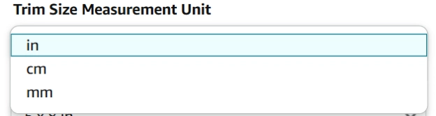 Trim Size у нас указывает на единицы измерения размеров книги.