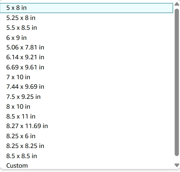 Trim Size показывает размер книги, здесь ты можешь сделать какой-то конкретный размер или создать самостоятельно.